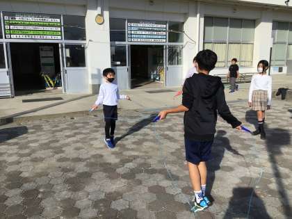 例年1・2月に実施していたなわとび集会は、今年度は12月14日に実施予定です。週に1回、休み時間に縦割りでなわとび練習をする耐寒なわとびは明日から開始です。今日の休み時間はそれほど寒くなく、なわとびを持って運動場へ出てくる元城っ子が多く見られました。個人のなわとび技能と体力の向上をめざして頑張りましょう。