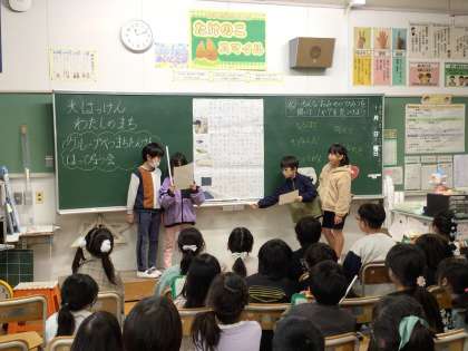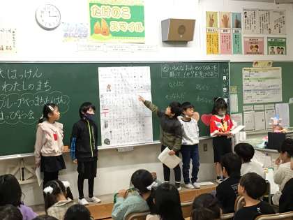 2年生 グループ別町探検発表会 公開日 2023/11/30 更新日 2023/11/30 お知らせ 2年生同士でグループ別町探検の発表会を行いました。 指し棒を用意したり、ジェスチャーを考えたりして伝わりやすい工夫をしていました。 他のグループの発表を聞く中で、びっくりしたことやなるほどと思ったことにリアクションをとる姿が見られました。