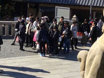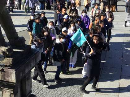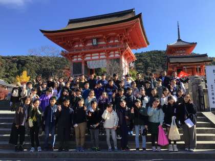 班別研修を終え、午前11時30分に集合して、学級ごとに清水寺を回っています。
