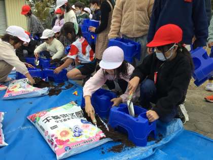 3年生の理科でチョウの観察をするために、来年度まで大切に育てます。