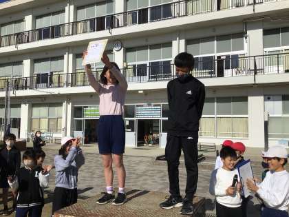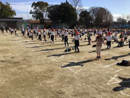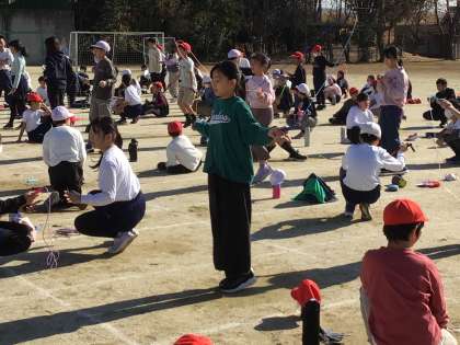 3校時に全校なわとび集会を開催しました。縦割り班を2つのグループにわけ、その班ごとで一人ずつ跳んでいき引っかかったら次の人に回していきます。制限時間いっぱいまで跳び続けることができるかどうかを競い合いました。11月から長い休み時間を定期的に利用して班ごとで練習に取り組んできました。各自の目標に向かって、どの児童も精一杯頑張りました。