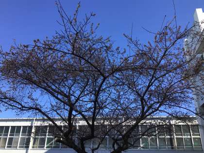 とても暖かい一日です。本校の中庭には、四季桜があります。雲ひとつない青空と四季桜の淡い色の花びらが、とてもよいハーモニーになっていました。