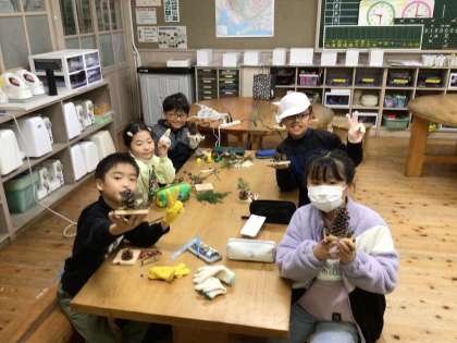 今日、3年生が追分小学校の3・4年生との交流会に出かけました。これは6月に追分小学校の皆さんを元城小に招いて行った交流の2回目です。本来ならば11月に行う予定でしたが、さまざまな事情で今日になりました。交流会を実施できて本当によかったと思います。今日はあいにくの雨となり、雨天時の案で進行しました。グルーガンを使って、松ぼっくりやどんぐりで工作したり、絵しりとりをしたり、追分小学校の皆さんによる追分小クイズで楽しんだりしました。あっという間に帰る時間になったほど、みんなが楽しいと思う交流会になりました。