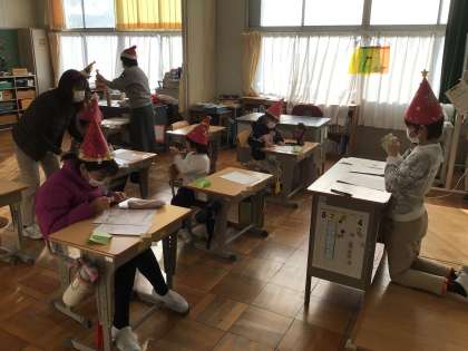 本校3・4・5組でお楽しみ会をしました。12月のこの時期なので、クリスマスのかかわる絵をもとにビンゴで楽しんだり、みんなで歌ったり、ゲームをしたりして楽しみました。6年生が中心となり会を進行し、クリスマス会はたいへん盛り上がりました。