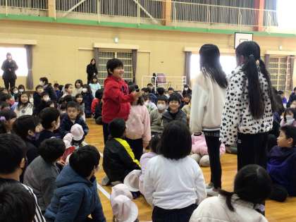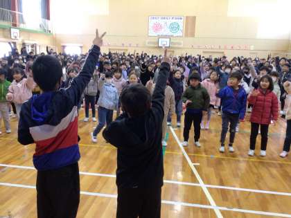 今日の2校時に冬休み集会を開催しました。前半は校長の話、生徒指導担当や養護教諭からのお話、10月以降に表彰を受けた児童の表彰伝達をしました。後半は、劇、クイズ、元城ジャンケンなどの催しを元城委員会の皆さんが計画、進行してくれました。おもしろい内容の劇やクイズでたいへん会場は盛り上がりました。明日からいよいよ冬休みです。安全な生活を心がけ、1月9日に元気な姿で会いたいです。