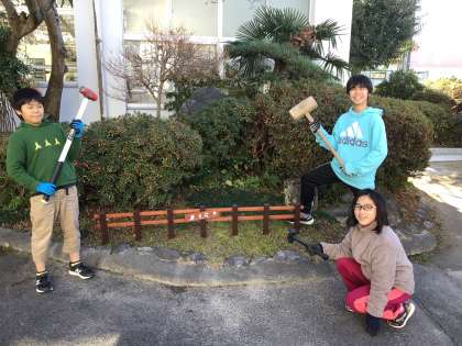 本校児童の3人が中庭の木周辺に木の柵を作って土に埋める作業まで行ってくれました。ありがとうございました。