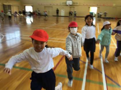 手をつないだまま追いかけたり逃げたりして、たくさん楽しむことができました。