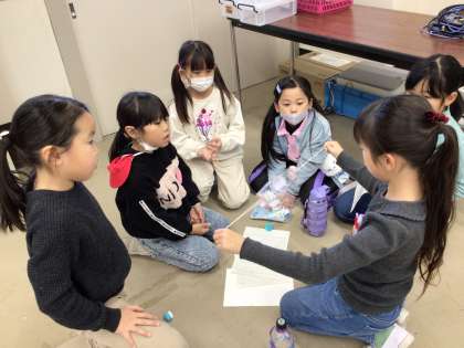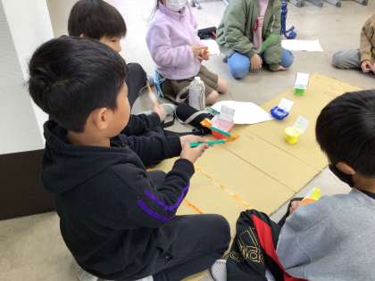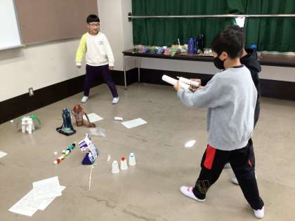 それぞれで作ったおもちゃを使って、グループでゲームを考えました。