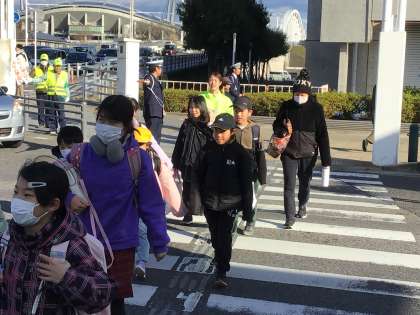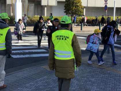 今日の下校時、豊田警察署員さんとボランティアさんによる下校見守りが行われました。広い通リの交差点に立っていただいて安全な渡り方などで助言をいただきました。明日から冬休みに入りますが、とくに交通安全に注意して過ごしてほしいと思います。