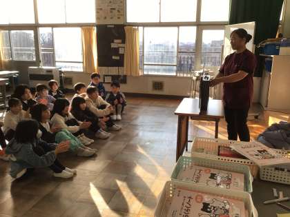 話をきいたり、内容に合わせて手拍子したりして楽しみました。