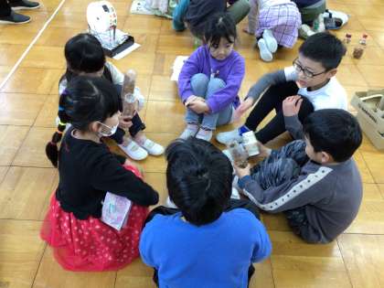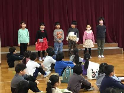 12月に予定されていた挙母こども園の年中さんとの交流会を今日実施することができました。毎年、本校の1年生と年2回行っているものです。今回は、児童がこども園に訪問しました。生活科の時間に作ったおもちゃで一緒に遊びました。おもちゃの材料は、ペットボトル、紙コップ、どんぐりなどです。楽器や簡単なおもちゃを持参しました。中には来年度、元城小で一緒に学ぶ園児さんもいます。とても楽しい1日になりました。