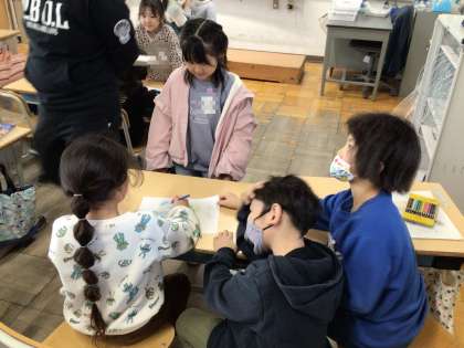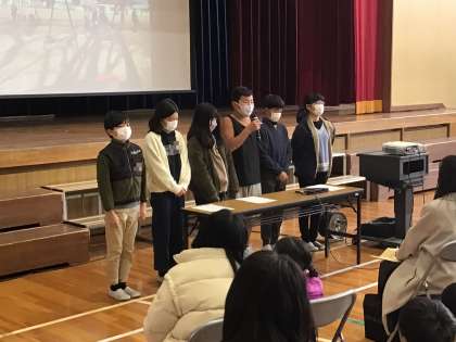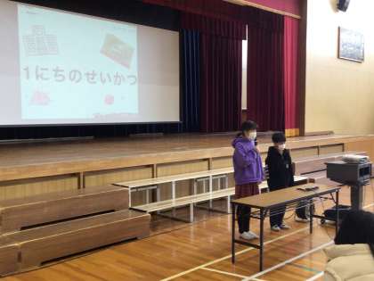 次年度入学予定のお子さん、保護者の方を対象に入学説明会を開催しました。冒頭で6年生が作成した学校紹介動画をみんなで見ました。その後、入学予定の子を教室に招いて1、2年生が一緒にゲームを楽しみました。