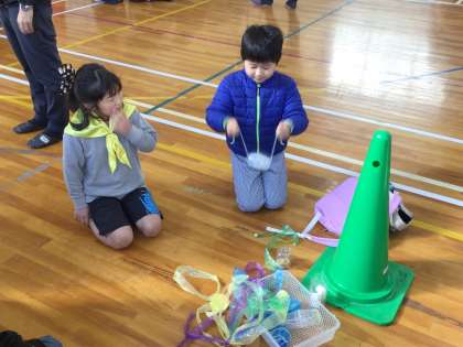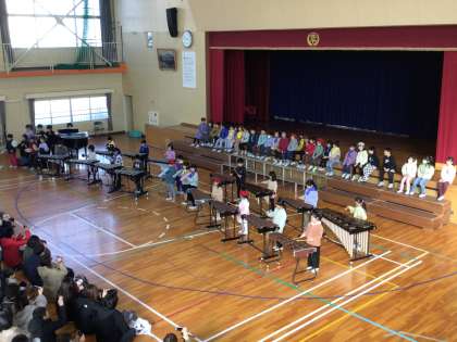 2年生の発表は器楽演奏から始まりました。その後、生活科で出かけた町探検で学んだこと、感じたことを発表しました。子どもたちが考え作ったおもちゃを発表し、最後に合唱でしめくくりました。
