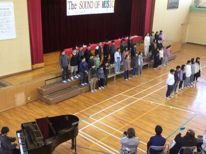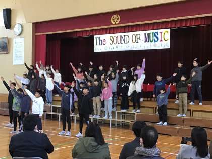 6年生は、THE SOUND OF MUSIC です。音楽の授業で作り上げてきた合唱、ハンドベルをミュージカル仕立てで披露しました。家族の方と一緒にエーデルワイスも歌いました。