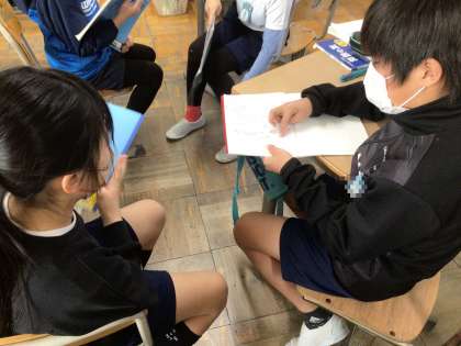午前中に5年生教室で算数の授業を参観しました。現在、単位時間あたりの進む道のりを表す速さの概念と、速さと道のりや時間との関係を学習しています。今日の課題は速さとかかった時間をかけ算すると進んだ道のりを出すことができることです。子どもたちは、どうしてかけ合わせるのかをペアになった友だちに伝えるために、ことばや図を使って一生懸命に説明していました。ある児童は、キーワードである単位時間あたりを丁寧に説明を繰り返しました。わかりづらいと声が上がりやすい単元でも、諦めずに取り組んでいる5年生のすごさを感じました。