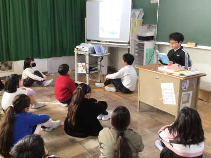 また、それ以外の学級には、各教室で図書委員会の児童の皆さんが読み聞かせ読書会を開きました。これまで練習してきたとおりに、ちょっと緊張もしましたがとても上手に行うことができました。