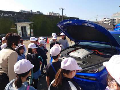 エコフルタウンにて、水素で走る自動車ミライやスマートハウスなどを見学しました。