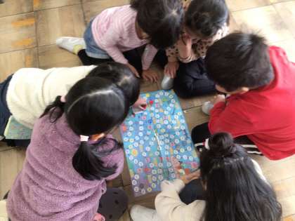 今日の2校時に、本校1年生と挙母こども園年長さんとの交流会を開催しました。今年度2回目の交流で、前回は12月に挙母こども園さんに訪問しましたが、今回は年長さんを小学校にお招きしました。わずか1時間程度でしたが、自己紹介の後、双六などで遊んだりプレゼントを渡したりして楽しく過ごしました。年長さんのため、1か月もすれば小学校入学です。少しでも不安なく入学できることも交流の大きなねらいです。