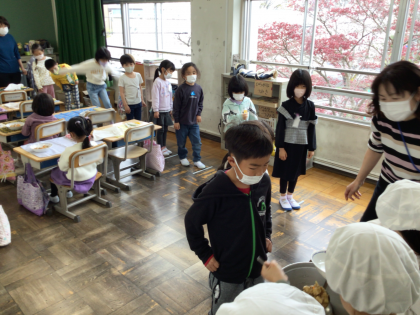 1年生 給食の様子 公開日 2024/04/08 更新日 2024/04/08 お知らせ 今日から給食が始まりました。 配膳の仕方や、当番の仕方を指導して、順番に準備をしました。 園で給食当番の経験をした子も多く、落ち着いて配膳することができていました。