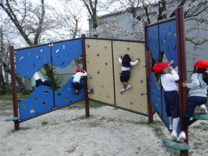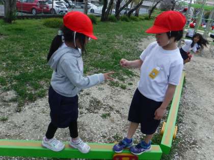 運動場にある遊具の使い方を確かめてから、遊具遊びをしました。