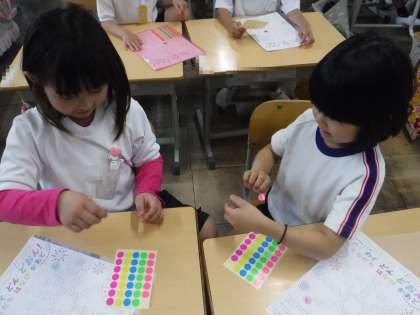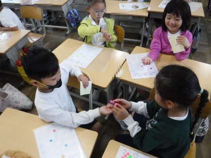 どの子ともしゃべるきっかけを作るために、「ともだちはなびカード」に取り組んでいます。