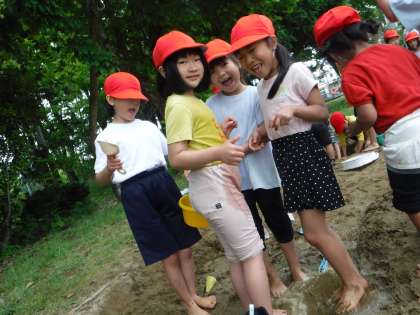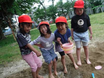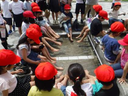 終わった後は、足洗い場で足を洗いました。子どもたちは、これもまた楽しかったようです。