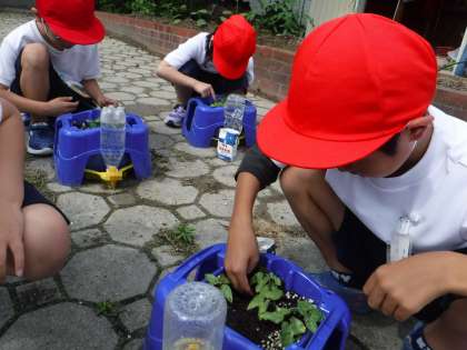芽を抜くことに驚いた子もいましたが、植物を大きく育てるための方法として学んでいます。