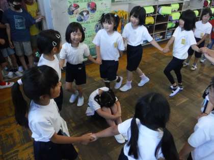 休み時間になると、大きな輪を作って、楽しんでいます。