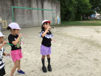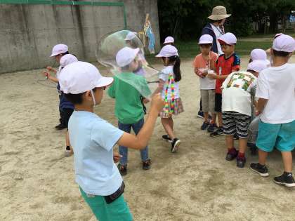 1年生 しゃぼん玉遊び その1 公開日 2024/06/26 更新日 2024/06/26 お知らせ 生活科の学習で、しゃぼん玉遊びをしました。 道具をかえたり、飛ばし方をかえたりしながら、たっぷりと遊びました。 「しゃぼん玉の大きさをかえるには、どうしたらいいかな?」 「ゆっくり息を吹けばいいよ」 「小さい穴からだと、小さいしゃぼん玉ができたよ」 「じゃあ穴が大きかったら、大きいしゃぼん玉ができるのかな?」 遊びの中にも、たくさんの気付きのある授業になりました。