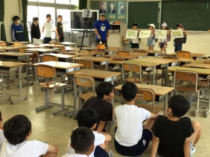 元城っ子集会 公開日 2024/07/09 更新日 2024/07/09 学校の特色ある活動 7月8日に、元城委員会の子が中心となりリモートで元城っ子集会を行いました。 今月の生活のめあては『やさしい言葉づかいをしよう』です。元城委員会の子たちが寸劇をしながら言葉づかいについて全校に呼びかけました。続いて、通学団の先生から、登下校時の熱中症予防や走らずにきちんと並んで歩くなどの約束の確認がありました。最後は、校長先生からも相手の気持ちを考えて話すことについてお話がありました。