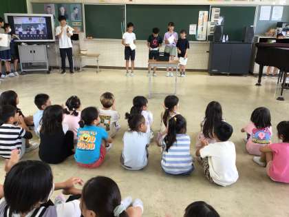 7月19日にリモートで夏休み前集会を行いました。校長先生からは、夏休みも「あなた」と「わたし」を大切にして過ごそうというお話がありました。後藤先生からは、夏休みの約束を守って安全に過ごし、みんな元気に9月2日に会おうというお話が、水谷先生からは、学習用タブレットを大切に扱うことに関するお話がありました。養護教諭の石橋先生からは、生活リズムを崩さず栄養と睡眠をしっかりとって健康に過ごそうというお話がありました。