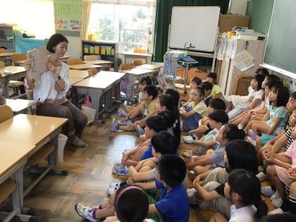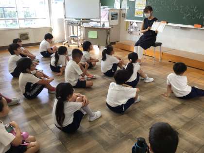 ドリームクラブの読み聞かせ 公開日 2024/09/04 更新日 2024/09/04 学校の特色ある活動 夏休み明け初めての読み聞かせは、1、2年と3・4組で行われました。子どもたちは久しぶりの読み聞かせを楽しんでいました。素敵な絵本の世界に引き込まれ、集中してお話を聴く子どもたちの姿が印象的でした。ドリームクラブの皆さん、ありがとうございました。
