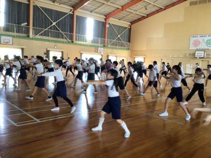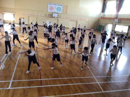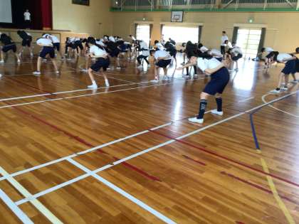 運動会に向けて5、6年生は毎日ソーラン節の練習に励んでいます。