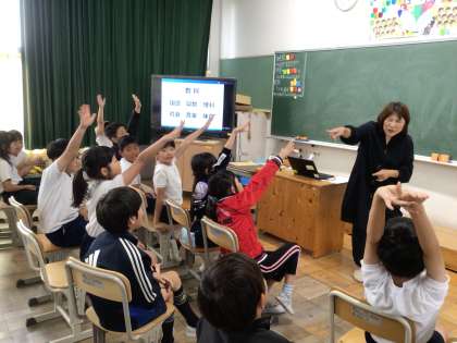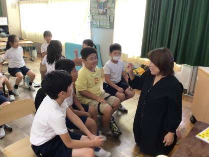 手話体験では挨拶や自分の名前、スポーツや好きな色や教科、気持ちを表す手話の方法を教えてくださり、手話を使って会話することの楽しさを味わう時間となりました。
