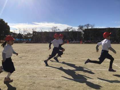 一、二年生の徒競走です。力一杯!ゴールへ向けて、諦めずに駆け抜けていきます。
