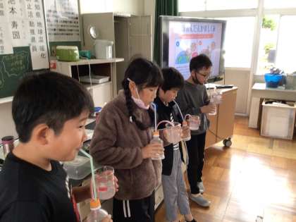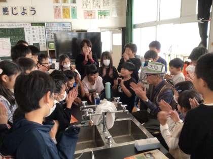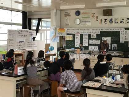 4年生の総合的な学習の時間で、愛知県地球温暖化防止活動推進員の池本様を講師にお招きし、地球温暖化を止めるためにできる身近なアイデアを教えていただきました。楽しい実験、災害の映像、たくさんの実物を用いた分かりやすい説明により、地球の未来について真剣に考える時間になりました。4年生の力で、できることを一歩ずつ実践し、発進していく計画です。