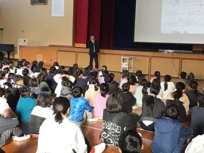 12月4日〜12月10日は人権週間です。元城小では、2日(月)に体育館で人権集会を行いました。まず、ステ木委員会が、人権とはどういうものかを説明してくれました。そして、どんな場面でどのような言動をとることが人権を尊重することなのかを寸劇の動画を交え、クイズ形式で発表しました。続いて、校長先生のお話を聞きました。体育館の壁に貼ってある「あなたとわたしを感じる元城っ子」をいつも意識し、心は見えないけれど、お互いの心を思いやって生活することの大切さについてのお話でした。