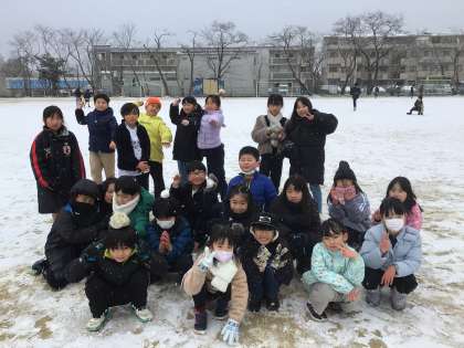 本日は、雪が降る中でも、元気に友達と遊ぶ子どもたちの姿が見られました。