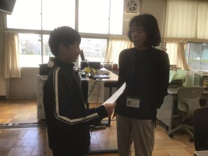 今日から心の相談員の先生が来ました。放送で、自己紹介をしていただきました。