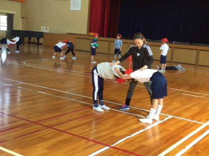 体育補助指導員さん 公開日 2025/04/17 更新日 2025/04/17 学校の特色ある活動 本年度は、1〜3年生の体育の授業で週1回、体育補助指導員の先生に来ていただくことになりました。運動するときの体の使い方や、こつを教えていただけます。体育の授業がますます楽しくなることでしょう。