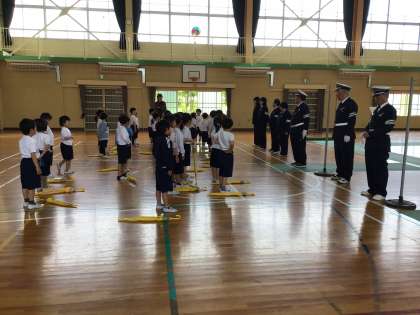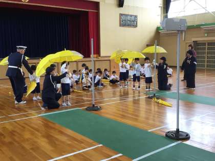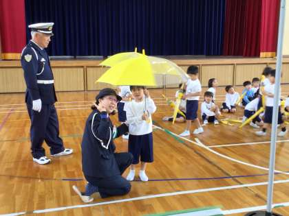 1年生交通安全教室 公開日 2025/04/24 更新日 2025/04/24 学校の特色ある活動 22日(水)に新入学児童対象の交通安全教室を体育館で行いました。横断歩道を渡るときには、右、左、右を見て、車が来ないことを確認してから渡ることを指導員の方々に教えていただき、一人一人練習しました。また、傘をさしているときには、傘を上にあげてから左右確認することも全員が練習でき、貴重な体験となりました。この学習を忘れずに、これからも、交通安全に気をつけて登下校してほしいと思います。