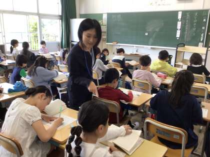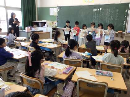 4月の授業参観(その2) 公開日 2025/04/26 更新日 2025/04/26 学校行事 1年生、2年生は、様子を思い浮かべながら楽しく音読発表をしました。4年生は、漢字辞典を使って総画数や部首や読み方などから一生懸命漢字を調べていました。