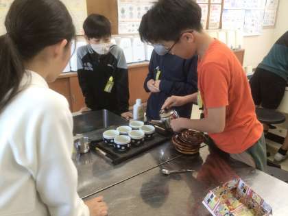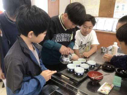 急須にお湯を入れ、濃さが同じになるようにお茶を淹れました。