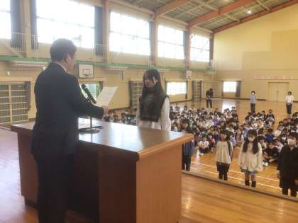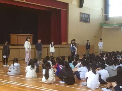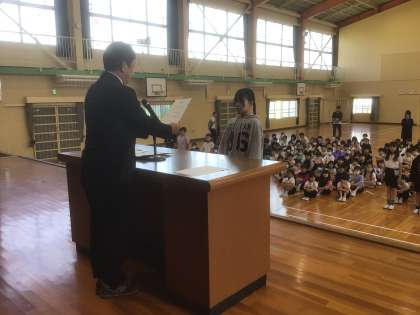 前期学級委員、委員会の委員長、副委員長さんを校長先生に認証していただきました。