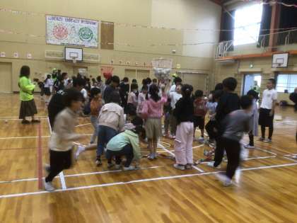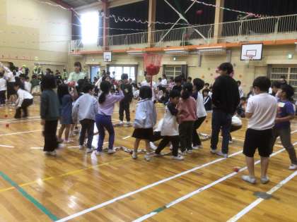 縦割り班対抗玉入れです。