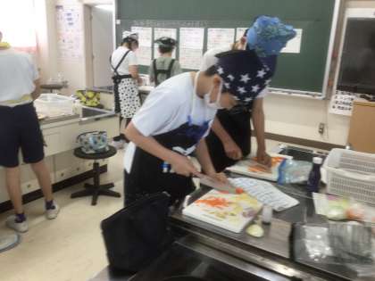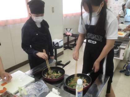6年生家庭科「いろどりいため」 公開日 2025/05/21 更新日 2025/05/21 お知らせ 家庭科で炒める調理をしました。基本の作り方の学びを生かして、野菜3種類は自分の家庭に合った身近なものを考えて選びました。味付けも、醤油や味噌など好みに合わせた工夫をした子も!美味しく食べて、片付けまで手際よく行うことができました。ぜひ、家でも挑戦してお家の人にも食べてもらえるといいですね!!