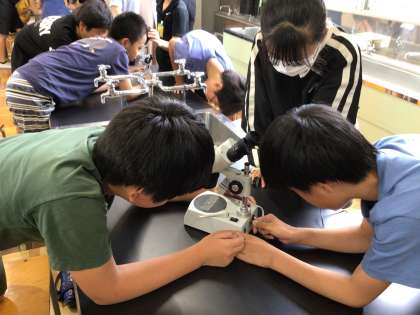 理科「メダカと卵の観察」その1 公開日 2025/06/13 更新日 2025/06/13 お知らせ 理科「メダカのたんじょう」の学習で、メダカの特徴や、卵の成長過程について観察をしています。 顕微鏡で小さな小さな卵を見て、「すごい!血が流れてる!」「今ぐるんって動いた!」と興奮しながら、変化に注目しています。