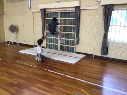 「はさみ跳び」の踏み切り方や助走の歩数など、ポイントをおさえながら、記録を伸ばしていけるよう練習に取り組みます。