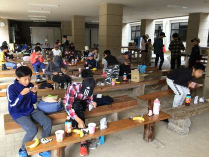 5年生 2日目朝食 公開日 2025/10/02 更新日 2025/10/02 お知らせ キャンプ2日目です。 朝食はお湯を注ぐだけで出来上がる、防災用のおにぎりと、カップ味噌汁、バナナです。 ラジオ体操で体を覚まし、いただきます!