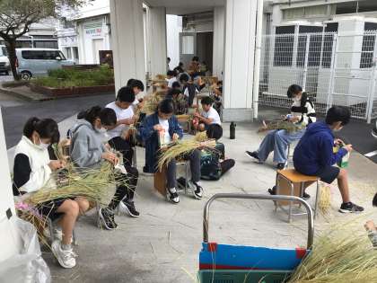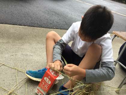 今日、稲の脱穀(稲穂から籾を採る作業)をしました。牛乳パックで籾をそぎ落とす方法で、脱穀しました。